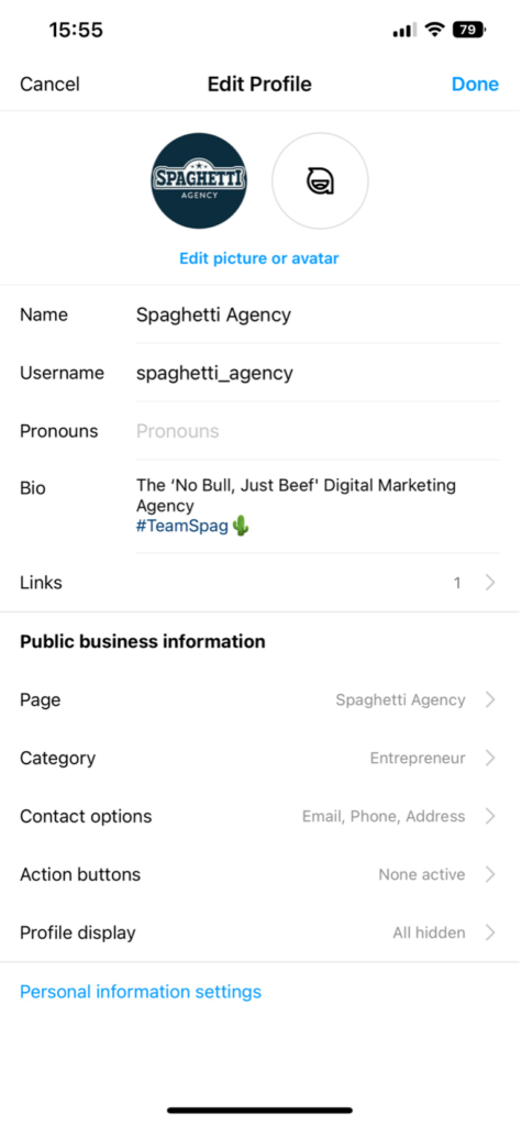 Here you can edit your bio to include the information, contact details, links, and CTA’s that we suggested above.