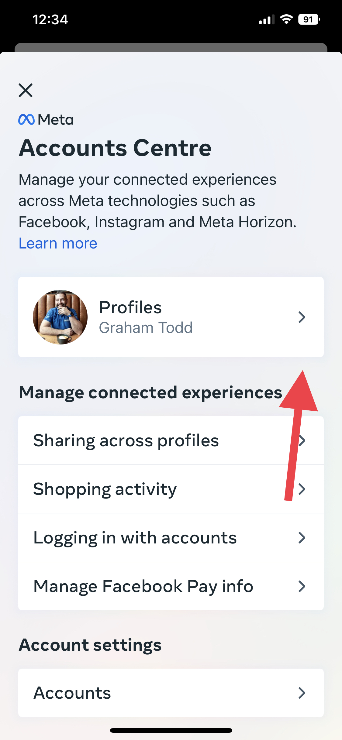 To check this, head to Facebook Accounts Centre on the Instagram app (yes, you’ll need the logins for Instagram), and check it out:
