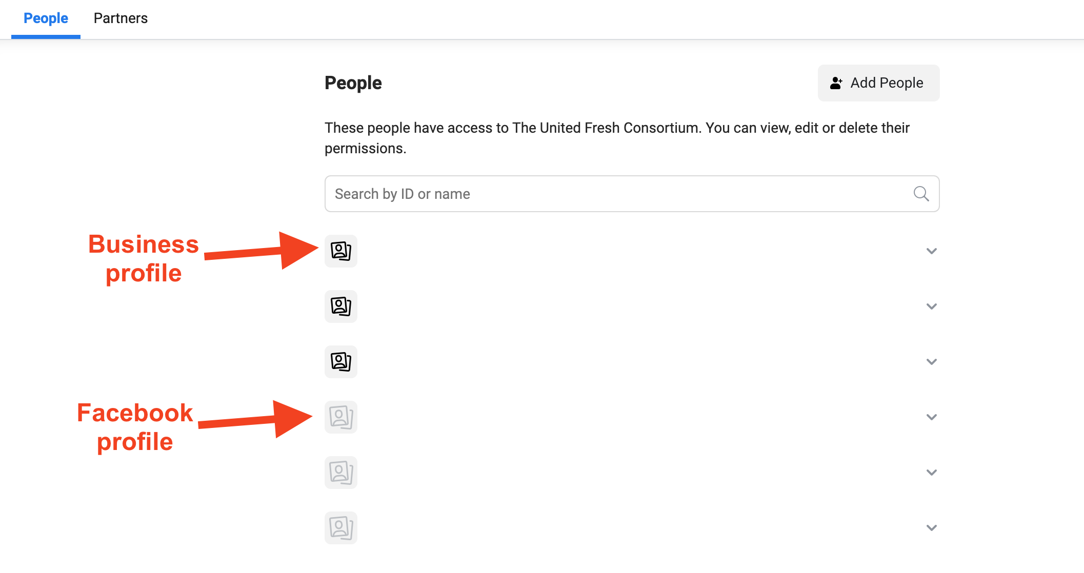 - If you don’t see one linked here, and just see a list of named admins, then you don’t have a Business Manager linked, and you don’t need to worry about the next steps for Business Manager.
