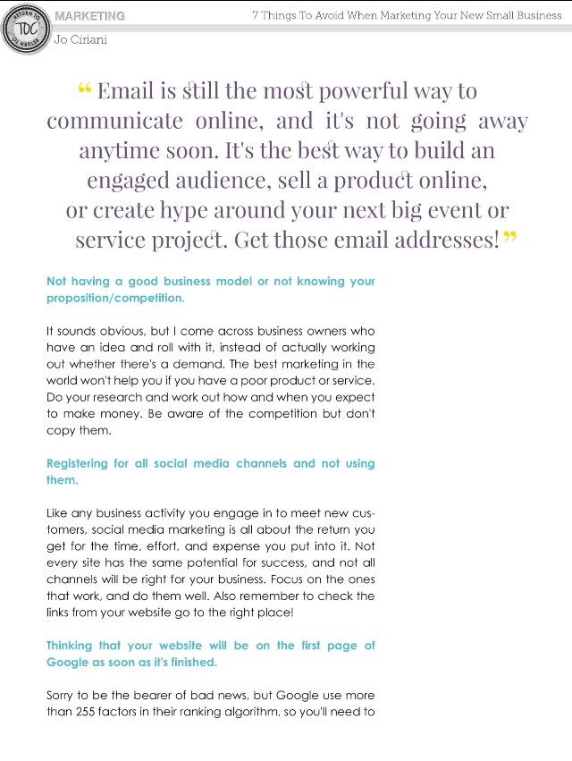 When I started, people talked to me about ‘building my list’ and I thought they meant for when I was shopping in Sainsbury’s. What I should have done right away was keep a database of people I met and networked with, so I could email them in future. Email is still the most powerful way to communicate online, and it’s not going anywhere soon. It’s the best way to build an engaged audience, sell a product online, or create hype around your next big event or service project. Get those email addresses!