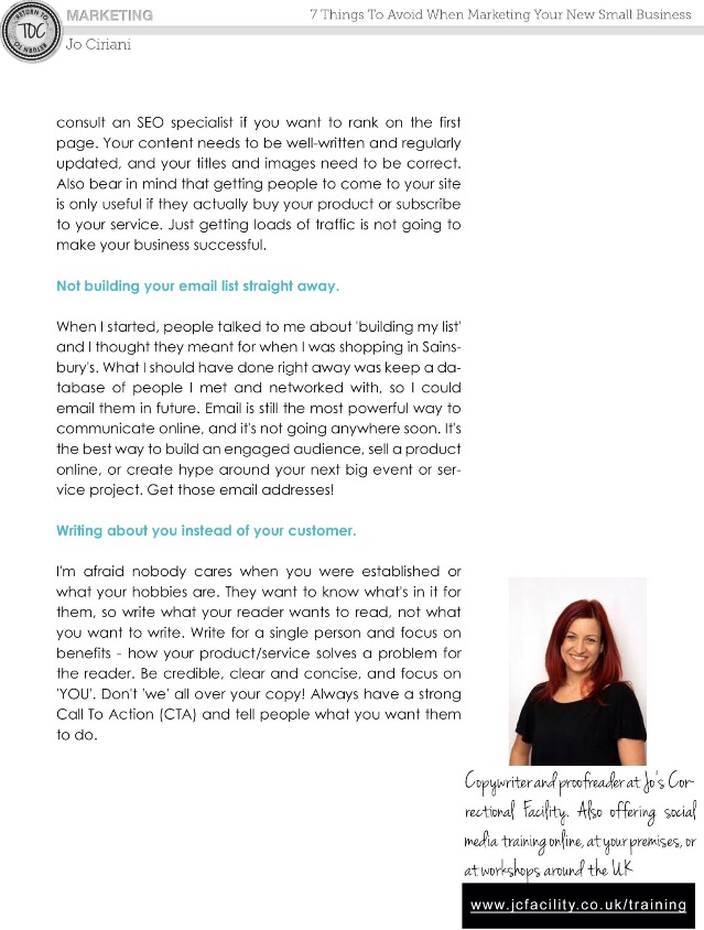 I’m afraid nobody cares when you were established or what your hobbies are. They want to know what’s in it for them, so write what your reader wants to read, not what you want to write. Write for a single person and focus on benefits – how your product/service solves a problem for the reader. Be credible, clear and concise, and focus on ‘YOU’. Don’t ‘we’ all over your copy! Always have a strong Call To Action (CTA) and tell people what you want them to do.